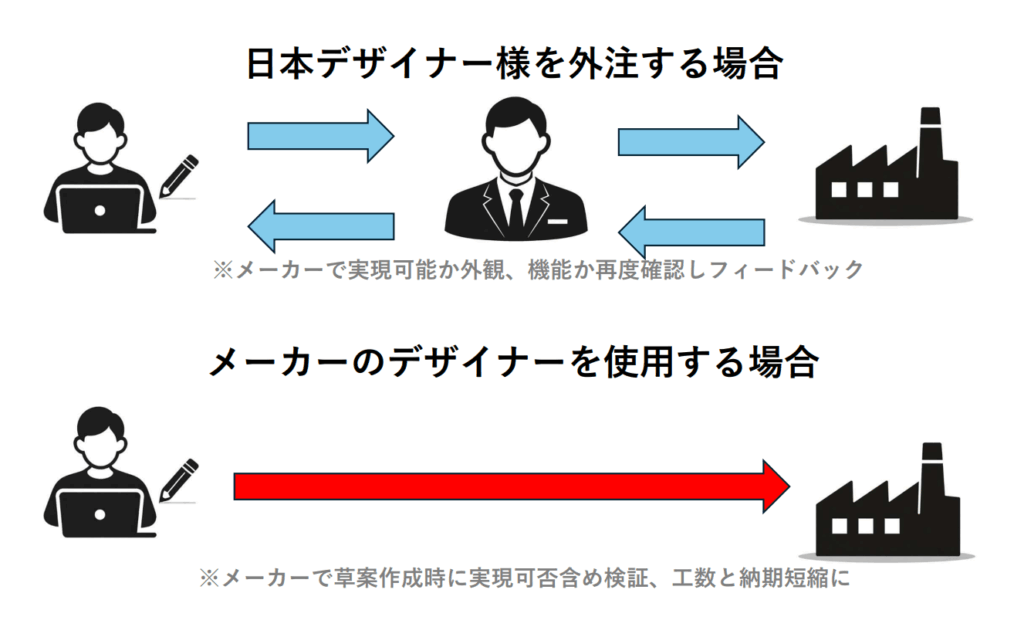 ODM先メーカーが保有する社内デザイナーを活用する方法もあります。